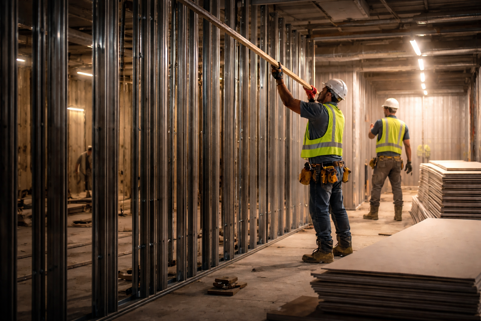 Steel Stud Framing • Insulation • Drywall • Shaft liner • Clean-Up